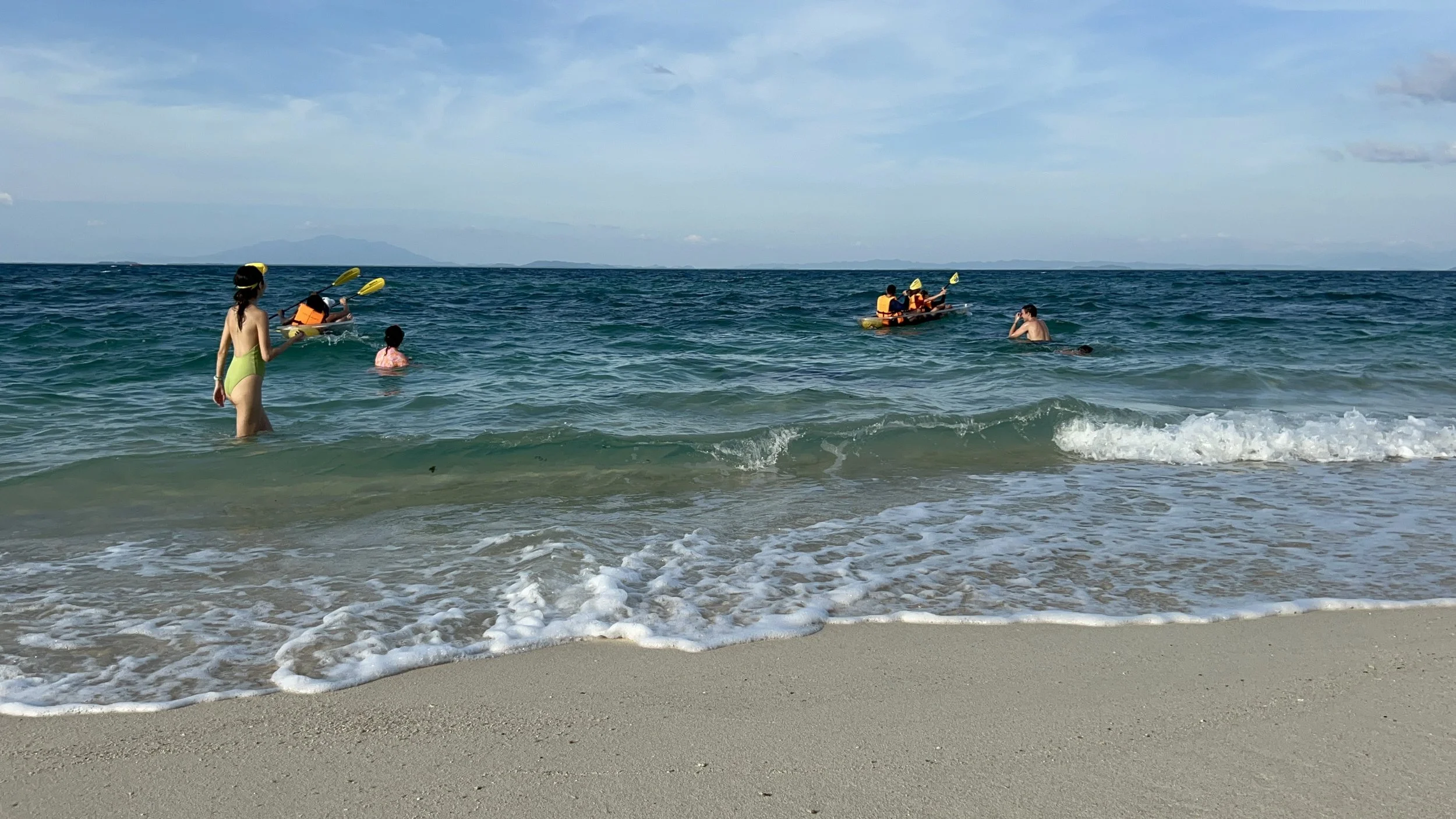 Heute, dem 20. November wollen wir eigentlich um die ganze Insel Kajaken aber es hat zu viele Wellen. Deswegen schwimmen wir einfach im Meer und im Pool. Am Abend genießen wir den schönen Sonnenuntergang und essen danach ein leckeres Abendessen. Nach dem Abendessen erzählt uns der Chef vom Resort noch über die Insel. Seit 30 Jahren pachtet seine Familie die Insel vom Staat Thailand. Er möchte sie so ursprünglich wie möglich belassen und führt das Resort mit grossem Schwerpunkt in Nachhaltigkeit. Er verbrachte seine Kindheit und Jugend in Bangkok und wenn immer möglich auf diesem Juwel, seinem Rückzugsort. Die Ruhe und die Natur geben ihm alles, was er braucht. Wir gehen alle zum Strand und machen ein Feuer. Es gibt Musik und wir tanzen und schauen die Sterne an.